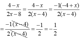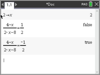 Setting the rational expression EQUAL to one of the equivalent choices will indicate whether that choice is correct ("true"). From our first "check", we see that Choice 1) ½ is not the correct choice.