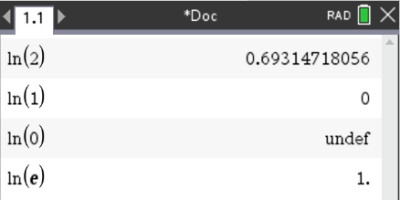 2. Evaluate: ln 2; ln 1; ln 0, ln e