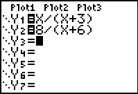 Note: Two possible graphing screens are being shown. The screens on the right are screens from an older calculator. If you have an older model (with an operating system prior to V2.40), that plots vertical lines ("heart beats") where the function is undefined, you will