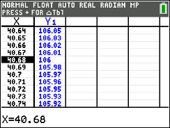to find your desired temp of 106º, in the Y1 column.